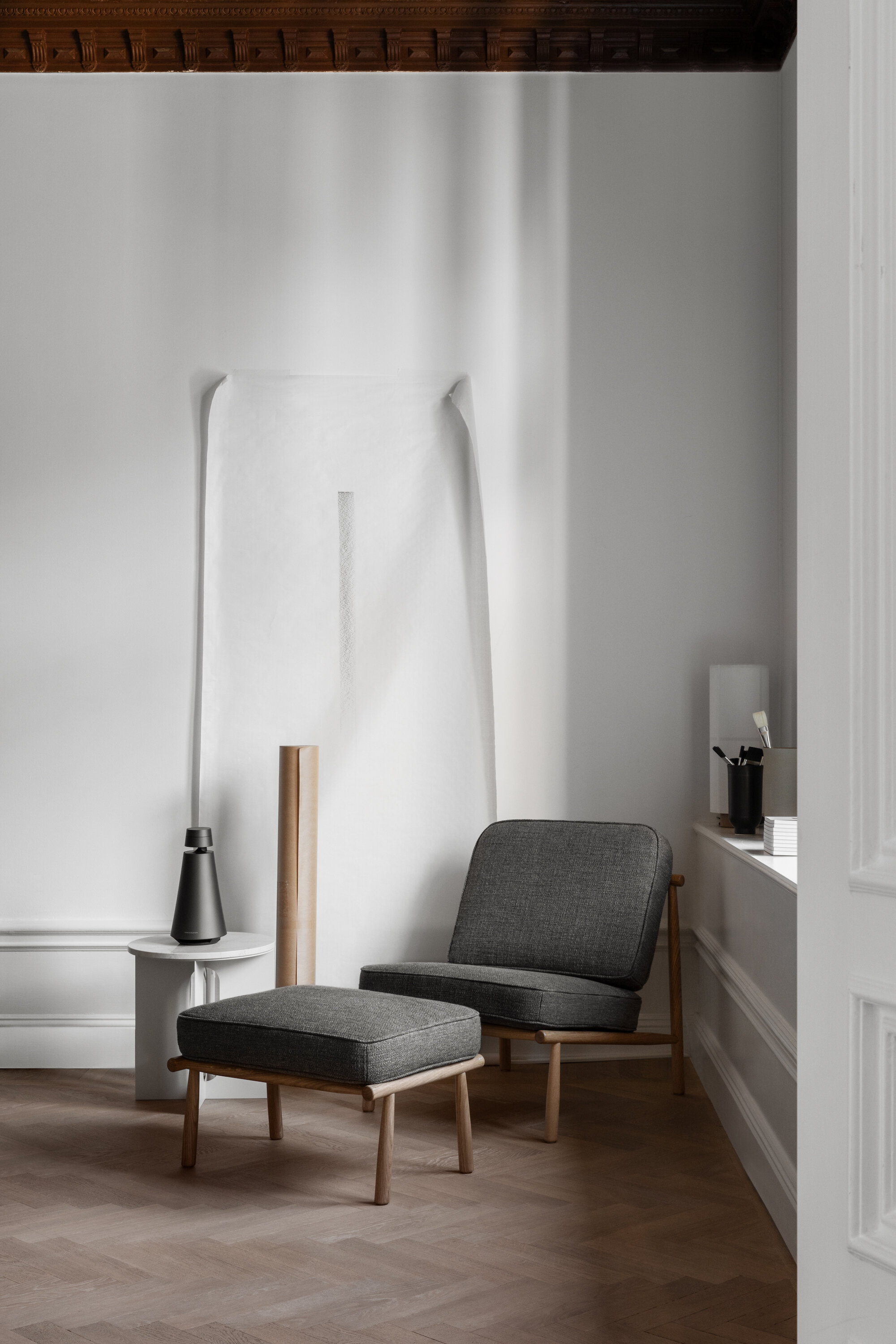 This stool is a extended version to match the Domus wood easy chair.
